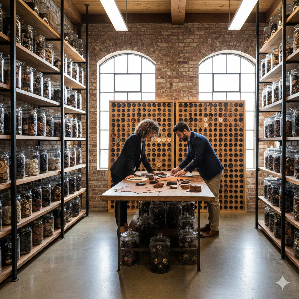 La nostra azienda è specializzata nella produzione di bottoni, fibbie, alamari, allacciature, tiretti per cerniere, chiusure a pomolo, etichette e accessori per pelletteria e per abbigliamento, nei materiali vero cuoio, vera pelle texas, vera pelle lavabile, cuoio rigenerato, feltro, legno ed altri materiali.